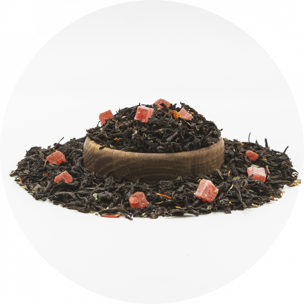 Индийский чай с кусочками папайи, листочками земляники и лепестками сафлора. Этот купаж порадует нежным сливочно-ягодным вкусом и мягким ароматом, создающим атмосферу лета в каждой чашке.
